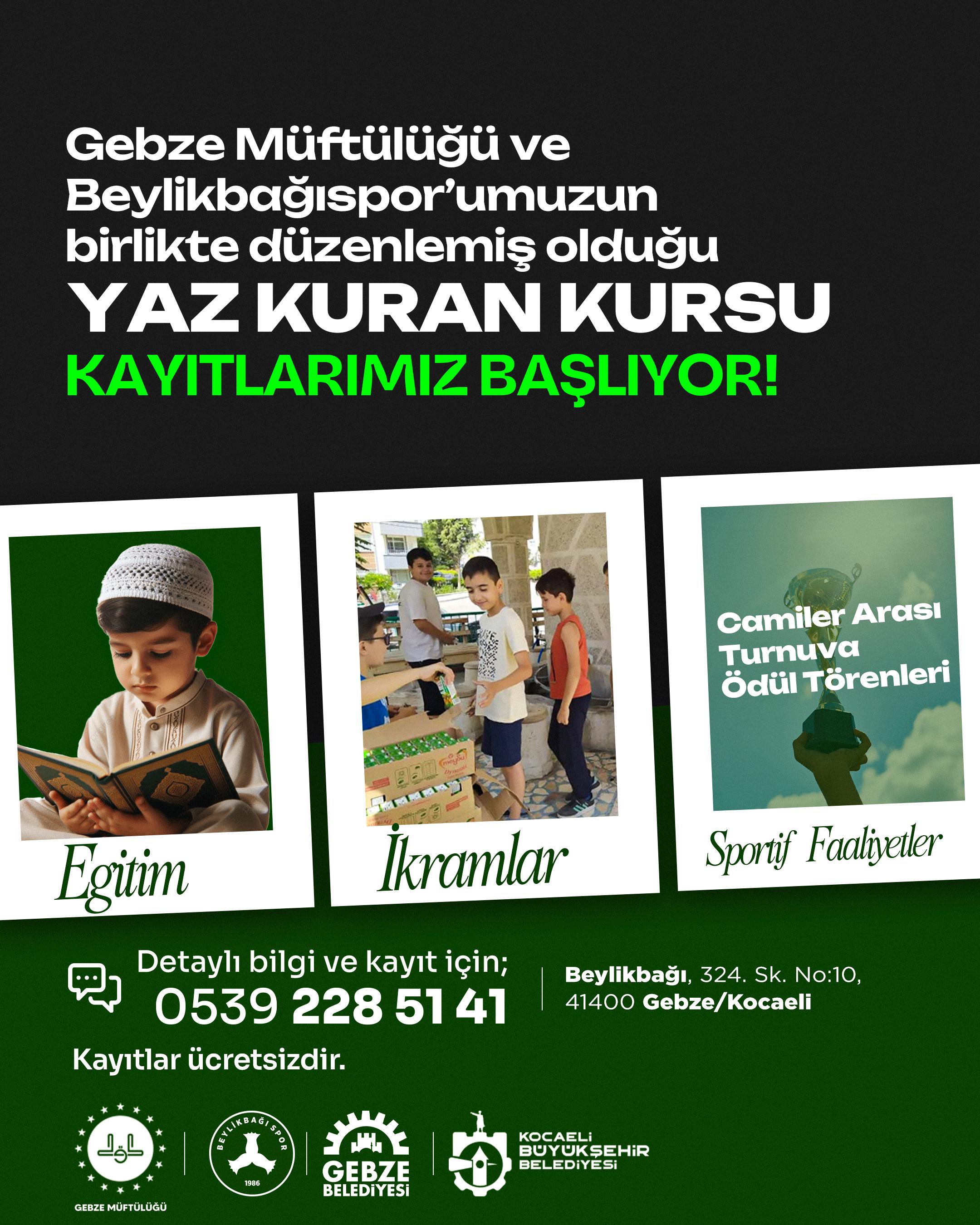 Gebze Müftülüğü iş birliğiyle hayata geçirilecek olan “Beylikbağıspor Yaz Kur’an Kursu”, sporcuların manevi yönden gelişimlerini de desteklemeyi hedefliyor.