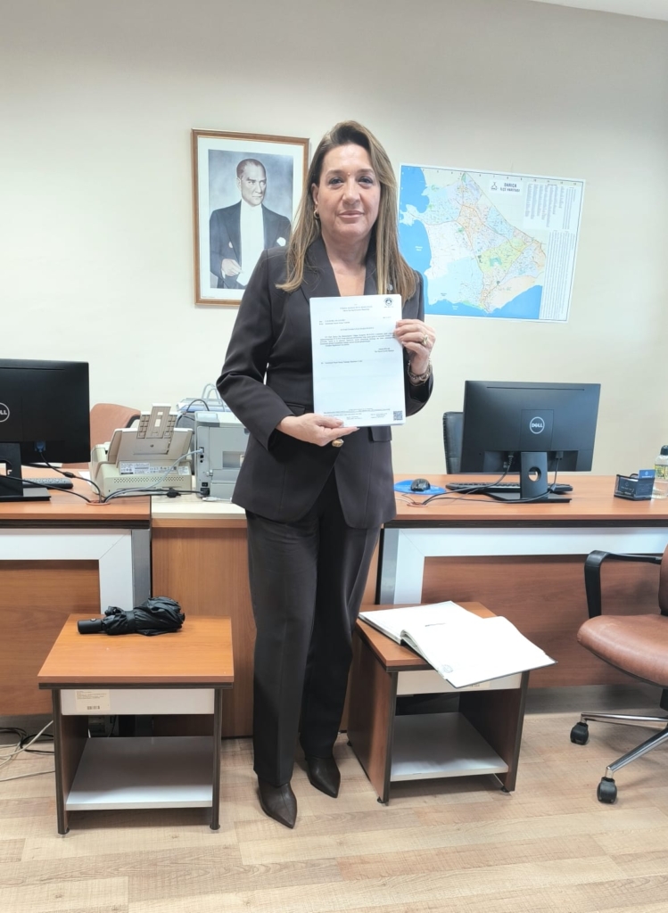 H.Pınar Demirel beraberinde İYİ Parti Yerel Yönetimler Başkan Yardımcısı Özhan Öztürk ve seçilen ilçe yönetim kurulu üyeleri ile birlikte İlçe Seçim Kurulu’na giderek mazbatasını aldı.