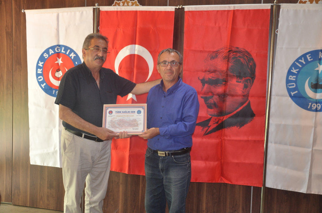 Şube Başkanı Ömer Çeker yaptığı konuşmada” Her veda yeni bir başlangıçtır. Emekliliğe hak kazanarak aktif çalışma hayatlarını sonlandırarak emekliliğe ayrılan Denetleme Kurulu Başkanı Erkan Temel ve Derince Sosyal Hizmet Merkezi Müdürlüğü İşyeri Temsilcisi Ahmet Yıldız kamu çalışanlarının haklarının korunmasında, geliştirilmesinde hizmetleri olmuştur. Sendikamızın amaç ve ilkeleri doğrultusunda, iş yerlerinde teşkilatlandırma ve üye çalışması yapmak suretiyle memur sendikacılığında sendikal kültürün oluşmasına yapmış oldukları katkı ve kamu görevlilerinin işveren veya işyeri ile ilgili sorunları dinlemek, ilgili yerlere iletmek, kamu görevlileri ile işveren arasında iletişim sağlamak için özverili çalışmaları ve üstün gayretleri ile Türk Sağlık Sen’in büyümesi için göstermiş oldukları samimi çalışmalardan dolayı şahsım ve teşkilatım adına kendilerine teşekkür ederim., Bundan sonraki yaşamlarını sağlık, sıhhat içerisinde sürdürmelerini, sevdikleri ile birlikte mutlu bir hayat sürmelerini, hayat çizgilerinin arzuları doğrultusunda şekillenmesi dileklerimle kendilerine saygılarımı sunarım.” Diyerek sözlerini sonlandırdı.